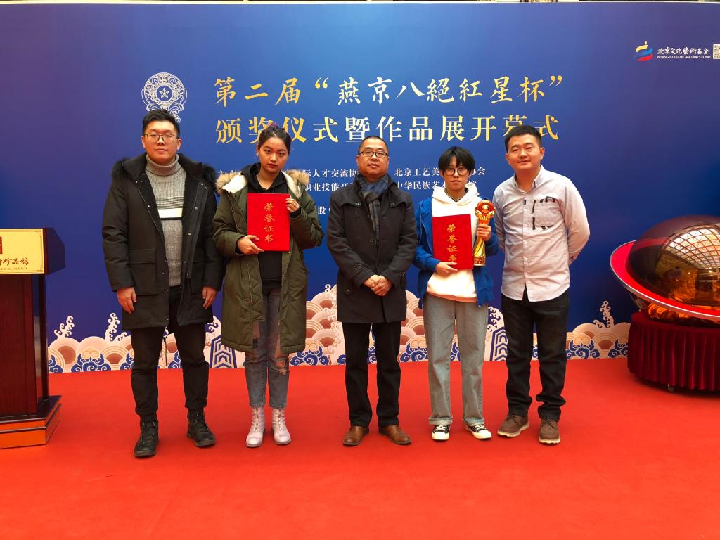 12月1日,第二屆“燕京八絕紅星杯”中國傳統手工藝大賽頒獎儀式暨作品展開幕式在中華民族藝術珍品館舉行。國家人力資源和社會保障部原黨組副書記、副部長楊志明,北京市人民政府原常務副市長翟鴻祥,北京市文化和旅游局黨組書記陳冬,北京市東城區原區委書記楊柳蔭等領導出席頒獎儀式。