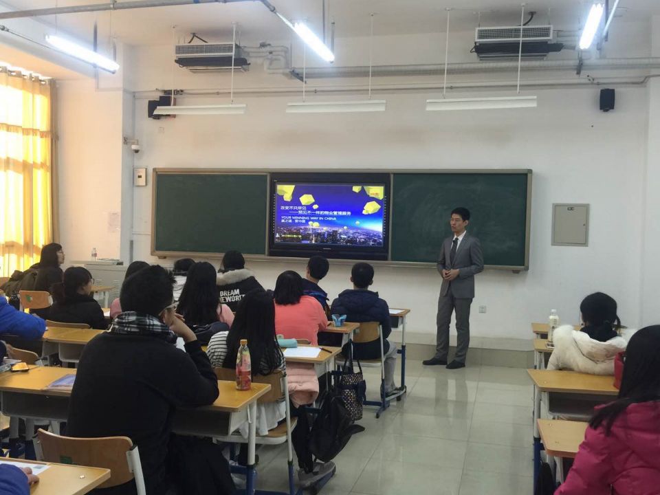 為了提升學生的實踐能力,讓學生所學知識和技能能夠滿足企業需求,為將來就業提供更多幫助,工商專業還聘請了很多行業專家擔任學生的課程教師。 如用友公司營銷培訓師走進學生課, 第一太平戴維斯高級顧問走進學生課堂,資深項目管理培訓師給學生上課。