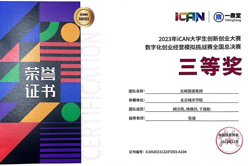 學生在iCAN大賽數字化創業經營模擬賽全國總決賽中獲得三等獎