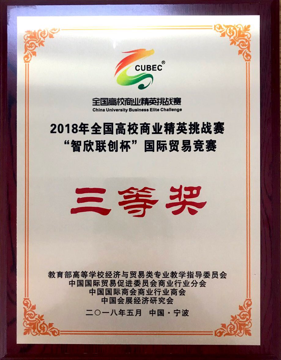 2018年全國高校商業精英挑戰賽國際貿易競賽全國三等獎