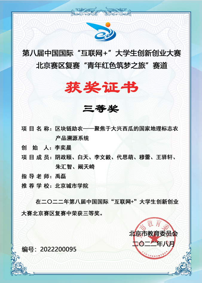 我校學生在2022年首都鄉村振興行動計劃中獲得一等獎