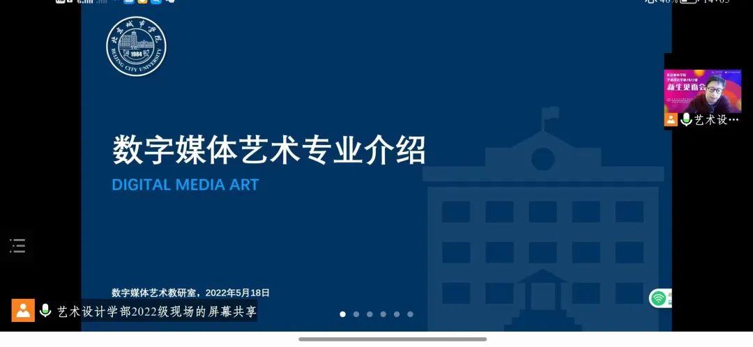 2022年9月1日下午1:00,北京城市學院藝術設計學部2022級新生見面會在線上舉行。本次新生見面會由藝術設計學部團總支書記張子研老師主持,藝術設計學部教師團隊及2022級新生參與了本次見面會。