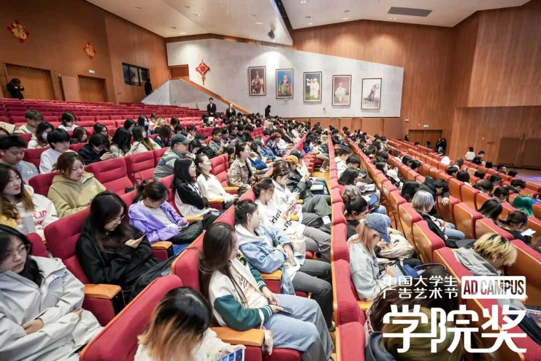 中國大學生廣告藝術節學院獎每年分為啟動儀式、開題、全國高校巡講、作品征集、評審和創意盛典6個部分。全國高校巡講在線下遴選30多所重點高校,帶領命題企業和創意大師走進課堂與高校學子面對面,解析企業命題、溝通創作思想、分享從業心得。