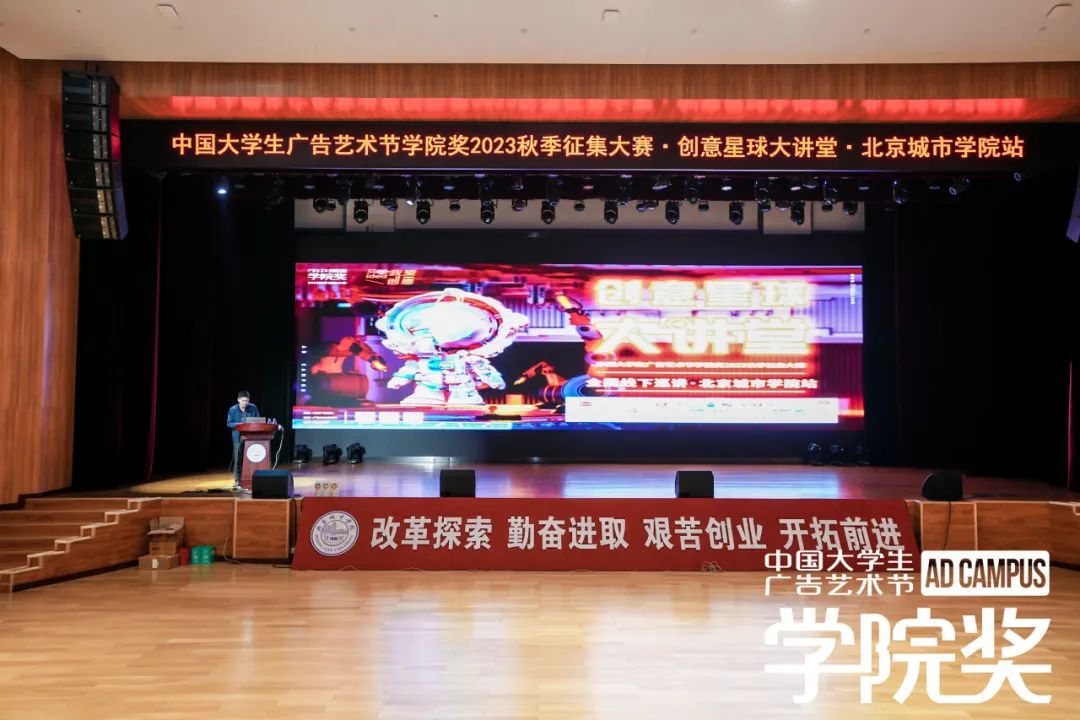 2023年10月18日上午8時,“中國大學生廣告藝術節學院獎2023秋季征集活動?創意課堂?北京城市學院站”在我校潮白講堂順利舉行。分享會由我校藝術設計學部學科競賽辦邢萬里老師主持,20余位教師、專家及350余位學生參加了本次分享會。