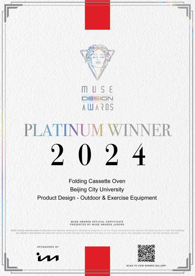 近日,2024年度美國繆斯設計獎(MUSE Design Awards)獲獎名單揭曉。我校藝術設計學部工業設計專業學生作品獲2024美國繆斯設計獎的最高榮譽——鉑金獎(PLATINUM WINNER)。本次獲獎是作品《Folding Cassette Oven》繼獲2023年德國紅點設計大獎后的再次獲獎,體現了藝術設計學部“以學科競賽為牽動,提升本科教學的質量和水平,著力培養大學生的實踐能力和創新能力”的責任與擔當。