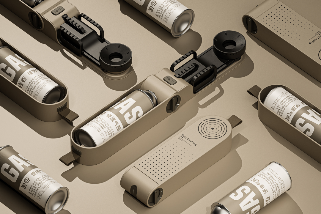 設計說明:這是一款專為家庭戶外休閑設計的折疊式卡式爐,攜帶方便,操作簡單,外觀時尚。傳統的卡式爐爐頭和爐排外露,不僅不安全,而且不美觀。新設計的盒式爐具有市場上最小的體積和最簡潔的外觀。其獨特的外部形狀和旋轉結構使其易于打開和關閉。存放時,爐頭和爐排完美地隱藏在盒內,整體外觀簡潔大方。使用時,將爐頭旋轉 180 度,然后打開爐排支架,操作起來省時省力。