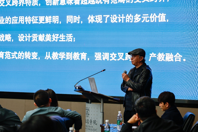 全國設計專業學位研究生教育指導委員會委員、中國工業設計協會副會長,江南大學設計學院院長、博士生導師魏潔教授作《與時俱進——設計教育改革與實踐》主題報告。魏教授以江南大學設計學院為例,闡述學科建設要立足地域資源、推動學科交叉,加強設計理論體系建設。并介紹了課程體系建設理念變遷、人才培養方案修訂、設計學院開設的特色課程,以及引智基地、國際聯合實驗室、協同創新實驗室等各類人才培養平臺建設情況。