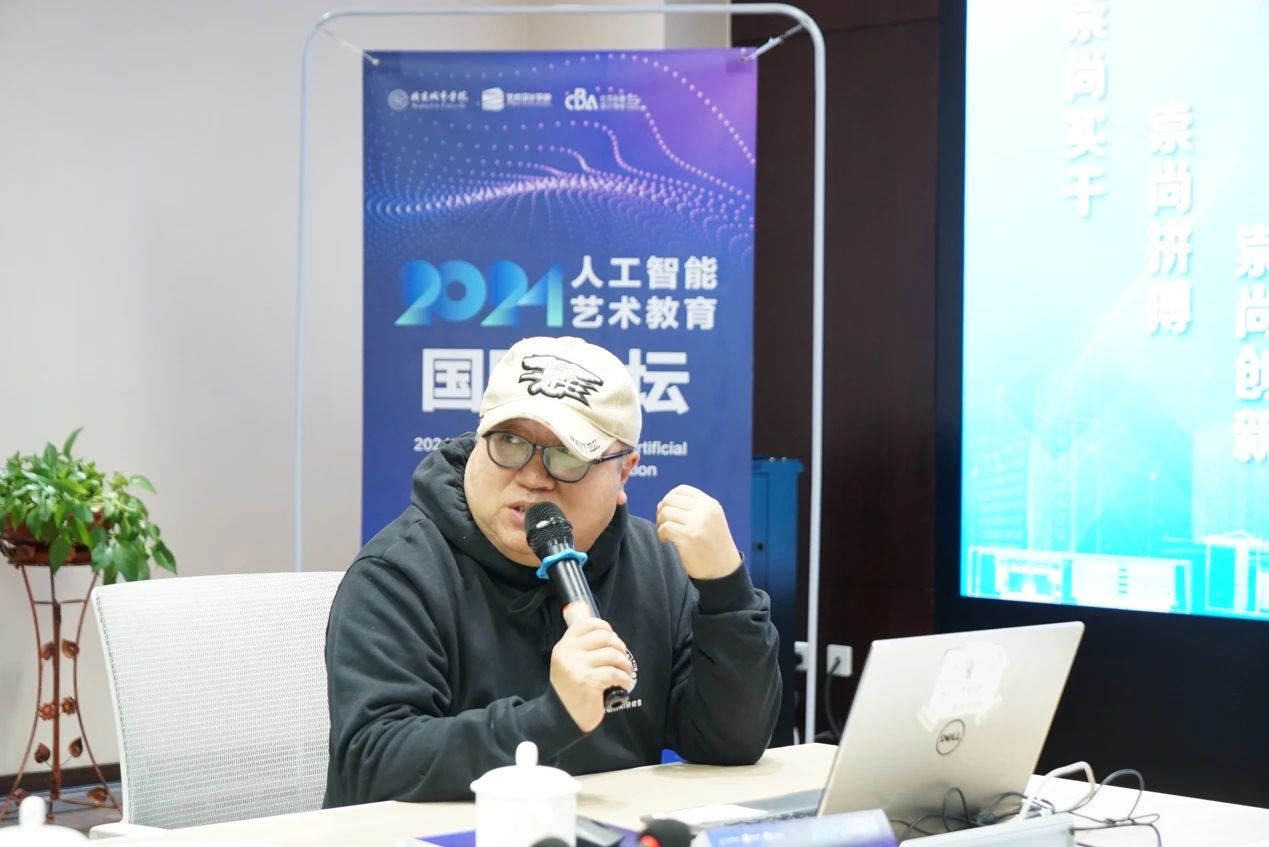 圓桌會議環節,學部副主任郭煜強調教學與人工智能接軌的重要性,將 “設計 + AI” 融入培養體系。組建了教師團隊,教授參與教學推廣,建風格、生成式人工智能數據庫,為 AIGC 輔助教學打基礎,推動專業融合、提升學生競爭力。