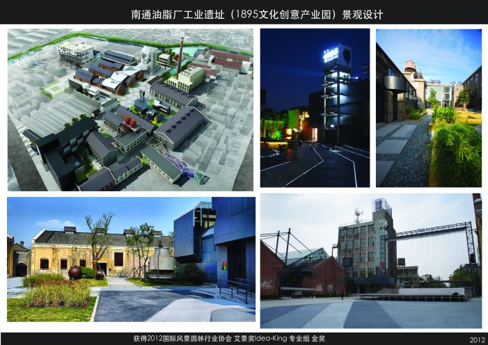 3、《南通1895文化創(chuàng)意產(chǎn)業(yè)園油脂廠地塊景觀設(shè)計》獲國際園林景觀規(guī)劃設(shè)計行業(yè)協(xié)會(2012)艾景獎專業(yè)組 金獎。
