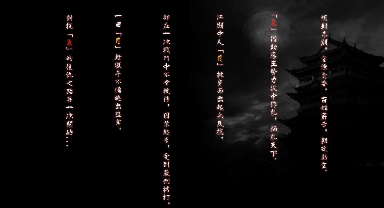 本作品是一款基于虛幻引擎4制作的動作冒險游戲,游戲講述了明朝末年動蕩時局下一個名叫“月”的江湖俠客,只身一人對抗禍亂天下的惡人“梟”的故事。作品目標用戶定位于動作游戲愛好者,游戲戰斗節奏較快,在玩法設計上允許玩家根據情況自由選擇潛行或正面與敵人對抗,游戲流程結尾的Boss戰需要玩家熟練運用學到的操作技能才能取勝,具有一定的挑戰性和可玩性。