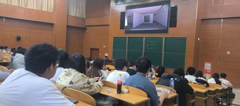 在分享交流中,來自藝術設計學部22環境設計專業的曹佳旺同學將自己參加市級比賽并獲獎的經歷予以分享。他詳細介紹了項目的選題、策劃、實施以及團隊協作等方面的要點和技巧。同時,還分享了在比賽中遇到的困難和挑戰,以及如何克服這些困難的方法和策略。這些優秀的藝術學子們展現出的創新思維和實踐能力讓現場在做的學生驚嘆不已。他們敢于將想法付諸實踐,不畏困難,積極探索,這種精神也感染了現場的聽眾。