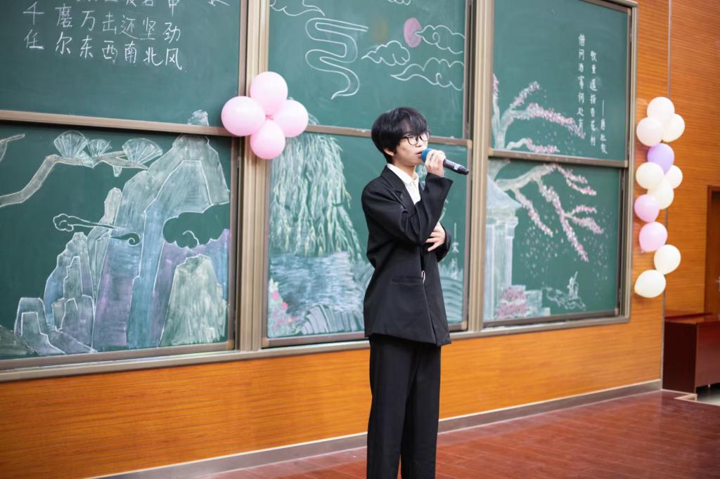 經典傳唱環節將活動推向情感與藝術交融的高潮。林優優以一曲改編版《木蘭詩》震撼開場,清越嗓音與鏗鏘節奏交織,將木蘭從軍的忠勇與思親的柔情演繹得蕩氣回腸;張展的《知否知否》以細膩聲線勾勒出李清照筆下的婉約愁思,引發全場輕聲合唱;何佳駿的《精忠報國》則以激昂高歌點燃愛國熱情,揮灑間盡顯青年擔當;李啟航、李炳男合唱的《青花瓷》如水墨氤氳,將傳統詩詞與現代旋律完美融合,贏得掌聲如潮。