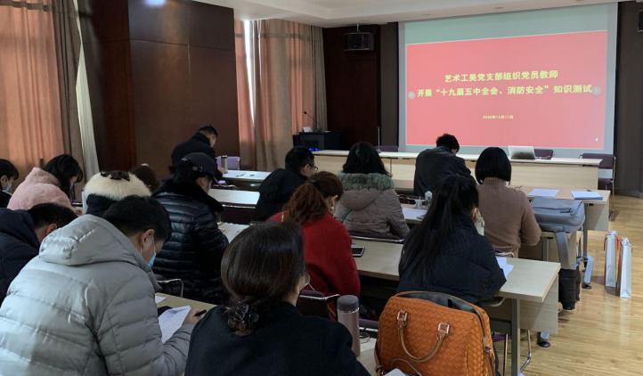 藝術工美黨支部書記王利民同志在會上講話,對支部全體黨員提出了深入學習貫徹十九屆五中全會精神的要求,并重申了疫情防控的要求。