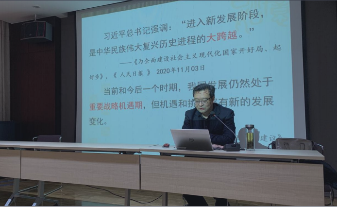 2021年1月7日,藝術工美黨支部在順義校區第一會議室召開全體黨員大會,我校馬克思主義學院常務副院長韓建新教授作了題為“新階段 新理念 新格局——學習十九屆五中全會精神”的講座。