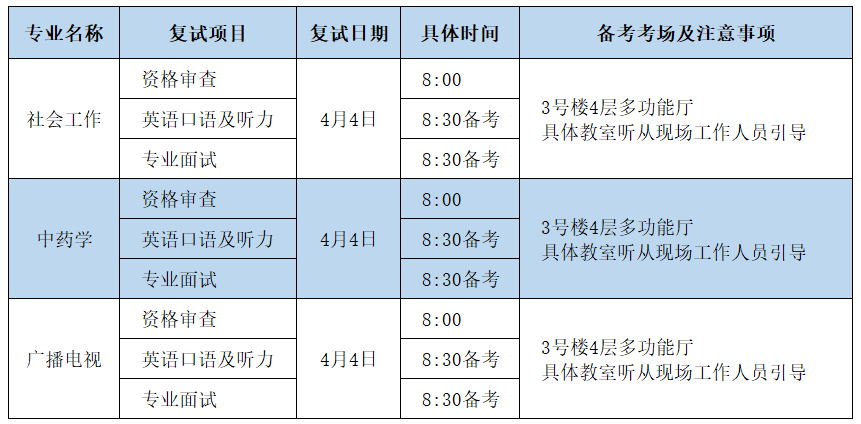 注意:請考生務必在備考教室仔細查看本專業復試的流程與安排,聽從現場工作人員的引導。公共管理專業待定。