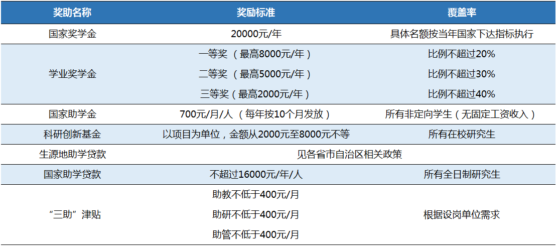 (獎助學金如有變化,以國家和我校最新政策為準)