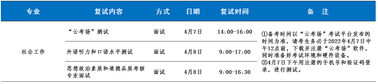 測試內容:思想政治素質和品德考核考察考生的政治態度、思想表現、道德品質、遵紀守法、誠實守信等方面。專業面試考察本專業的基本理論知識、運用社會工作的方法、技巧及理念解決實際問題的能力、對于專業領域內的熱點、難點問題的分析能力。