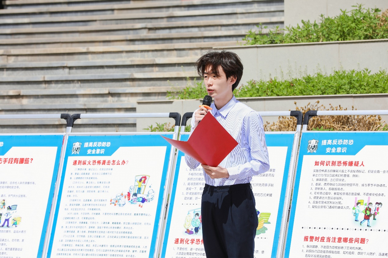 活動在青春快閃《我們都是追夢人》的熱烈氛圍中開始。活動現場,緊緊圍繞今年的主題“總體國家安全觀,創新引領十周年”,通過安全知識宣傳、青馬班學生代表宣講、參觀國家安全主題展覽、校領導發放宣傳資料等多種形式,向在校師生開展國家安全宣傳教育,引導師生樹立國家安全意識,自覺抵制不良思想和行為。
