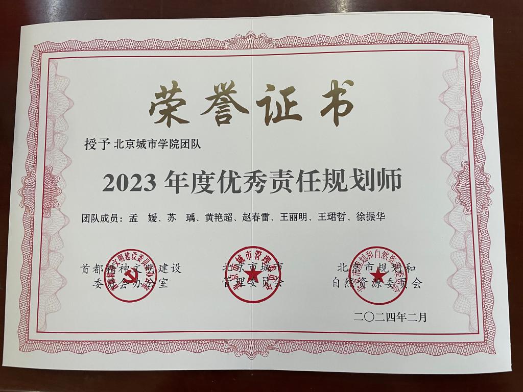 會上,北京城市規劃學會副理事長、秘書長于化云宣讀了2023年度優秀責任規劃師稱號推薦名單。2023年,北京各區共計140個工作扎實、成果顯著的責任規劃師團隊和個人被首都文明辦、市城市管理委、市規劃自然資源委命名為“2023年度優秀責任規劃師(團隊、個人)”。我校順義區楊鎮責任規劃師團隊、順義區漢石橋責任規劃師團隊、平谷區平谷鎮責任規劃師團隊均榮獲北京市2023年度優秀責任規劃師稱號,我校責師團隊已多次獲評此稱號。