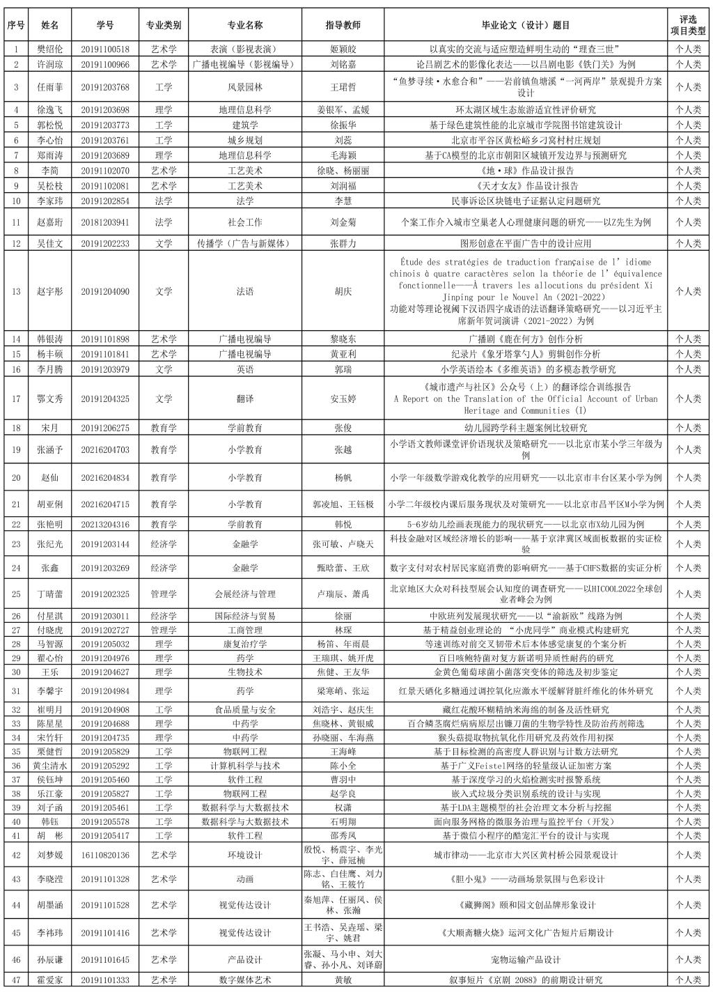 近日,北京市教委發(fā)布了2023年北京高校優(yōu)秀本科畢業(yè)設(shè)計(論文)名單,我校共獲個人類優(yōu)秀畢業(yè)設(shè)計(論文)47篇。