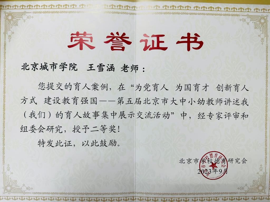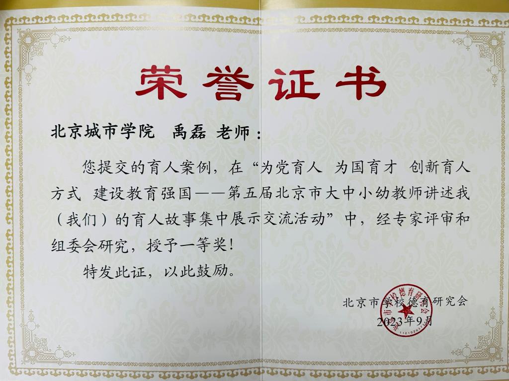 9月9日,在由北京市委教育工委、北京市教委主辦,北京市學校德育研究會承辦的“為黨育人、為國育才——第五屆北京市大中小幼教師講述我(我們)的育人故事”集中交流展示活動中,我校經濟管理學部禹磊、生物醫藥學部王雪涵兩位老師的育人案例分別獲得一等獎和二等獎。