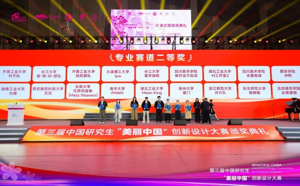 近日,第三屆中國研究生 “美麗中國” 創新設計大賽評選結果正式公布。我校研究生團隊此次共提交23項參賽作品,覆蓋媒體傳達設計、服裝與服飾設計、環境空間設計、工業產品設計等五大賽道。其中,5件作品從全國7339件作品中脫穎而出,共斬獲全國二等獎1項、三等獎4項,充分彰顯了我校學子扎實的專業素養與卓越的創新能力,也體現了學校辦學育人的豐碩成果。獲獎名單如下: