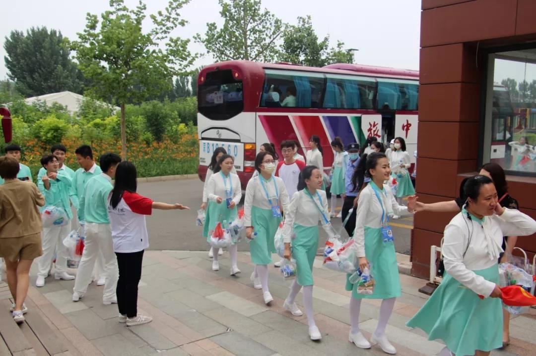 同學們從慶祝大會凱旋回校時,校黨委副書記、副校長秦士友,黨委宣傳部、學工委、表演學部、校團委等相關部門負責人帶領所有參訓學生的輔導員們一起在潮白講堂門口為光榮返校的參訓師生準備了簡短而熱烈的迎接儀式。合唱團的同學們自發唱起了《唱支山歌給黨聽》《新的天地》等歌曲,將在廣場上的激動心情第一時間傳遞給了在校師生。