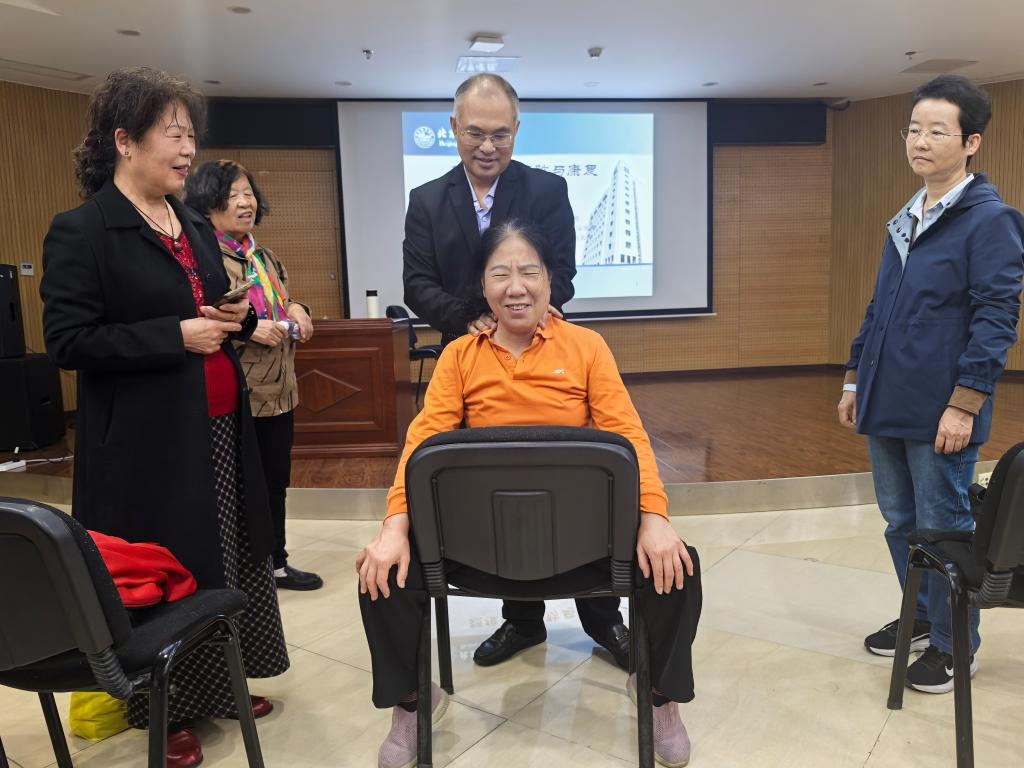 講座結束后,老人們紛紛咨詢自己頸椎方面的問題,陳老師耐心解答,并為老人們進行了安全簡單的頸椎理療,現場互動充滿了溫馨。
