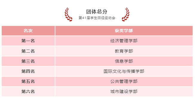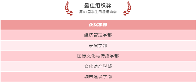 經過激烈角逐,大學生組經濟管理學部、教育學部、信息學部、國際文化與傳播學部、公共管理學部、城市建設學部獲得團體總分前六名,生物醫藥學部、藝術設計學部、教育學部、公共管理學部、信息學部被授予精神文明獎,經濟管理學部、表演學部、國際文化與傳播學部、文化遺產學部、城市建設學部被授予最佳組織獎。