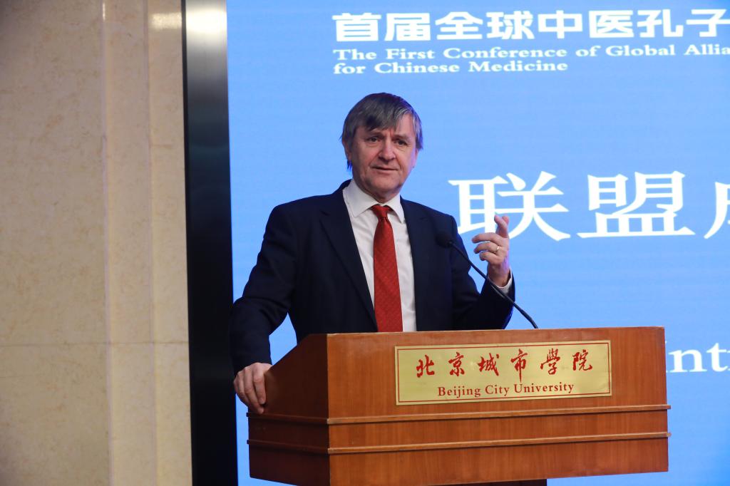 聯(lián)盟主席、愛爾蘭高威大學(xué)中醫(yī)與再生醫(yī)學(xué)孔子學(xué)院愛方院長Timothy O’Brien介紹了聯(lián)盟具體工作,回顧了聯(lián)盟自成立到正式運(yùn)營的過程中開展的系列活動,闡釋了聯(lián)盟為加強(qiáng)各中醫(yī)孔子學(xué)院在中醫(yī)藥教學(xué)、臨床、科研等方面的全方位合作搭建了良好的平臺,必將進(jìn)一步擴(kuò)大合作范圍,產(chǎn)出合作成果。