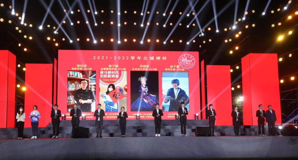 黨委書記龔裕、黨委副書記葉映芳、副校長胡麗琴為2021-2022學年北城榜樣代表頒獎。在學科競賽、志愿服務、冬奧保障等方面獲得突出成績的學生代表受到表彰,為新生的大學啟航提供榜樣示范。