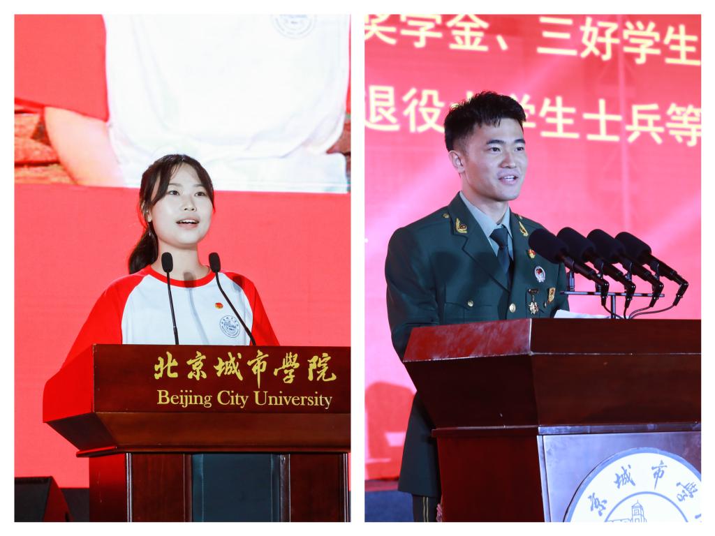 經濟管理學部2022級新生苗卉妍、研究生部2022級新生彭博涵作為新生代表發言:“清晰立體的北城精神更加堅定了我的北城夢想”,“作為北城新生的我們,應扎實學好每一堂課,讀好每一本書,走好每一步路,以青春之我、奮斗之我,書寫人生華章”。