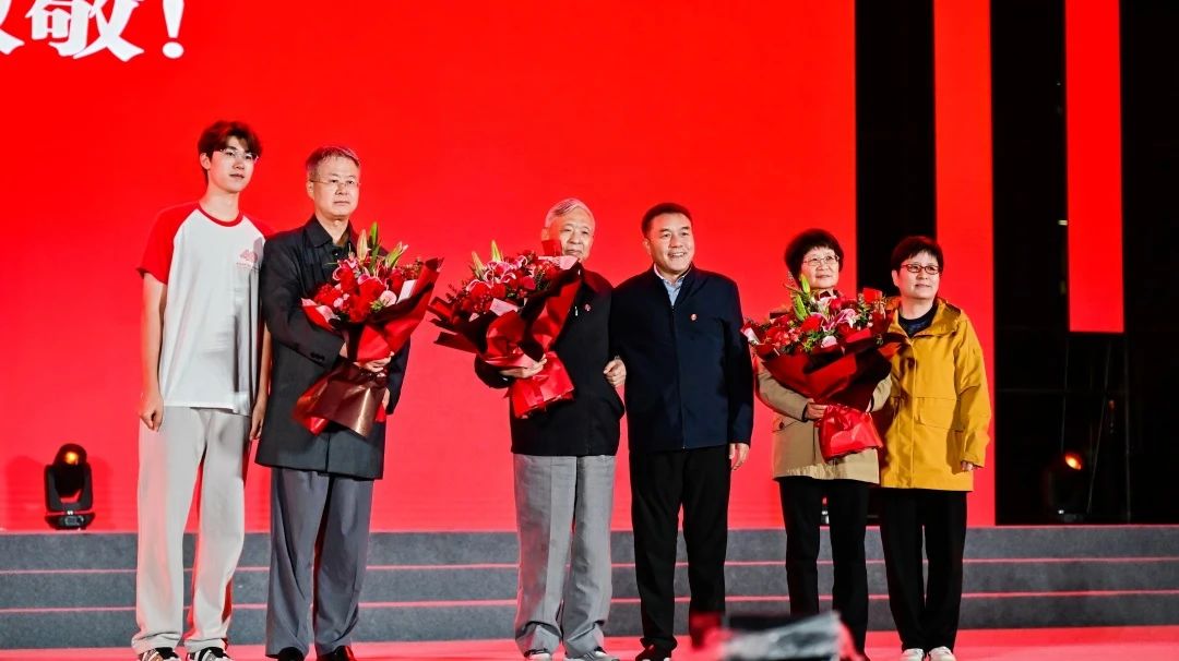 學校特邀北城創辦者代表段柄仁,首批教師代表、學校原副校長冉楠和第一屆學生代表施樹嘉三位師長共襄盛典,段柄仁先生為大家獻上了一堂深刻而感人的校史教育課,校黨委書記龔裕、常務副校長田培源攜學生代表向三位師長獻花致敬。