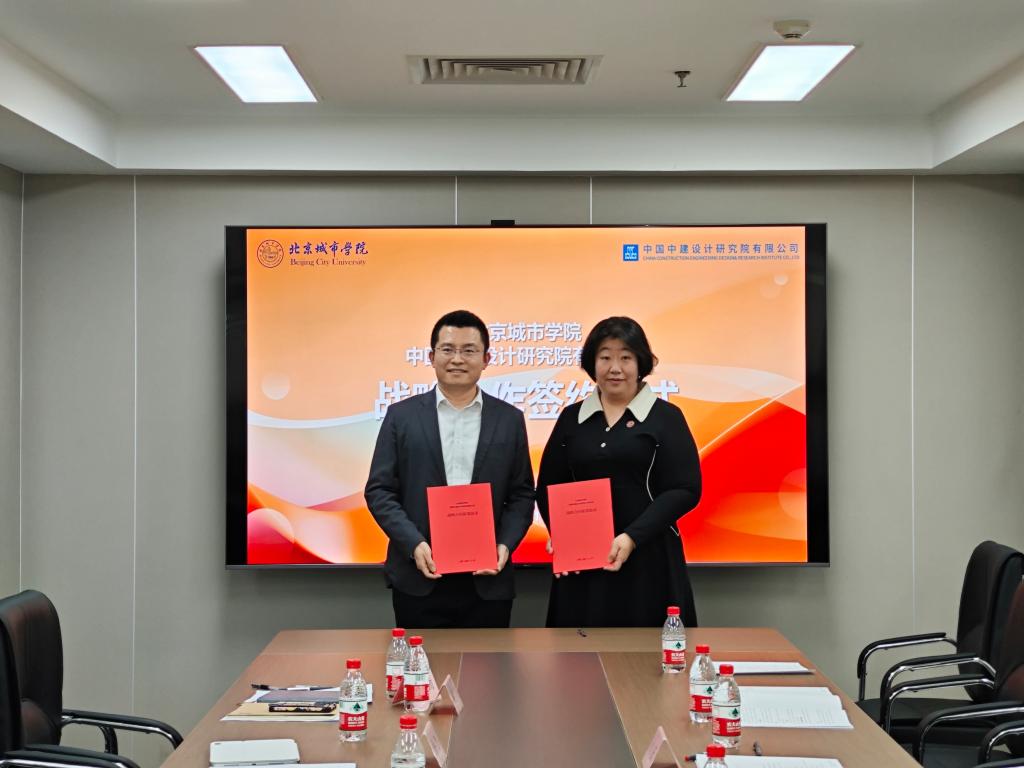 雙方深入交流之后,簽署戰略合作協議。中建設計研究院隸屬于中國建筑集團有限公司,是國內專業最全、規模最大的國有甲級建筑企業之一。雙方將在構建產學研協同創新平臺,構建產教融合平臺,聯合申請各級科研及標準制定項目,聯合開展學術及新技術交流活動,實習與就業等方面開展深入合作,凝聚創新資源并增進協同互動,為校企高質量發展作出貢獻。