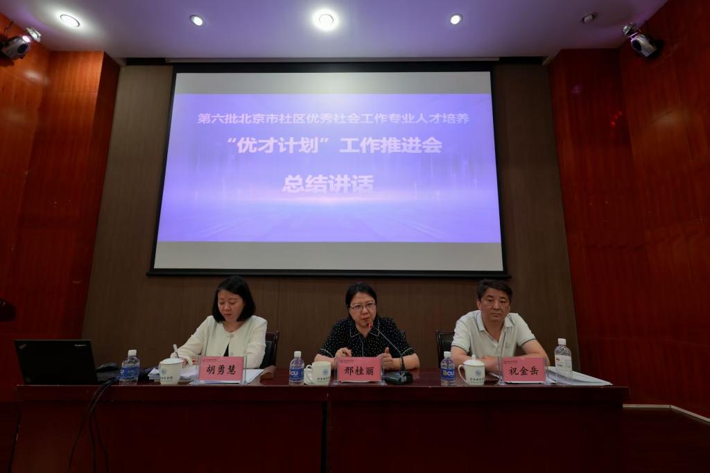 7月23日,第六批北京市社區優秀社會工作專業人才培養(“優才計劃”)工作推進會暨專題培訓與督導會在我校航天城校區舉行,市委社會工作部五處負責人、各區委社會工作部相關負責人、各級專業督導以及第六批“優才計劃”學員共計240余人線下參會,我校社工專業團隊組成的“優才計劃”市級督導團參加會議。會議通過視頻展示、工作部署、經驗交流、專題督導、專項研討等形式,全面總結“優才計劃”五年來的實施成效,并對下一階段工作進行系統部署。