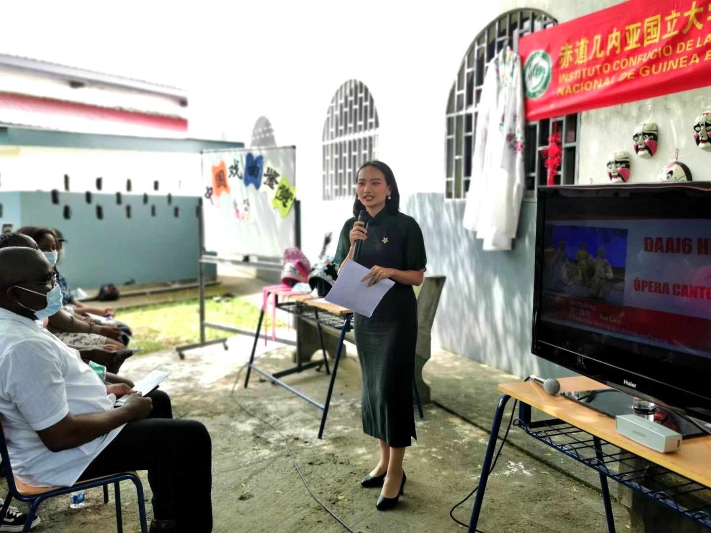 劉慧玲在赤幾國立大學孔子學院活動中介紹中國戲曲文化