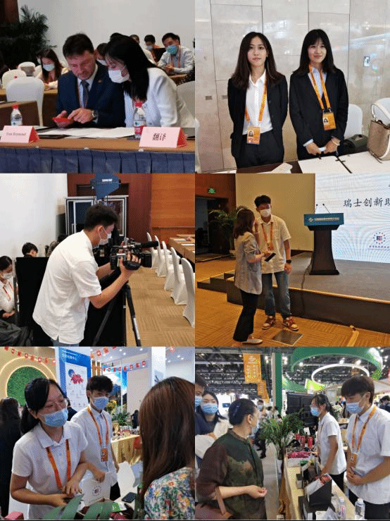 為全面做好本屆服貿(mào)會籌備工作,8月26日起,文傳學(xué)部英語及翻譯專業(yè)學(xué)生湯圓、孫菲岳、常平、申佳益、李月陽等10余位同學(xué)在瑞士歐中企業(yè)聯(lián)合會首席代表張新宜老師帶領(lǐng)下,全程參與了歐中企業(yè)聯(lián)合會瑞士主題日活動及瑞士展區(qū)運(yùn)營服務(wù)工作,包括瑞士駐中國大使館商務(wù)參贊陪同口譯;瑞士主題日論壇籌備、會務(wù)資料整理,會場布置、參會嘉賓對接;瑞士展區(qū)產(chǎn)品布置、商務(wù)洽談與溝通等各環(huán)節(jié),以優(yōu)秀的語言服務(wù)和會務(wù)服務(wù)助力中瑞創(chuàng)新綠色發(fā)展,體現(xiàn)了我校國際文化與傳播學(xué)部外語復(fù)合型人才的活力和風(fēng)采。