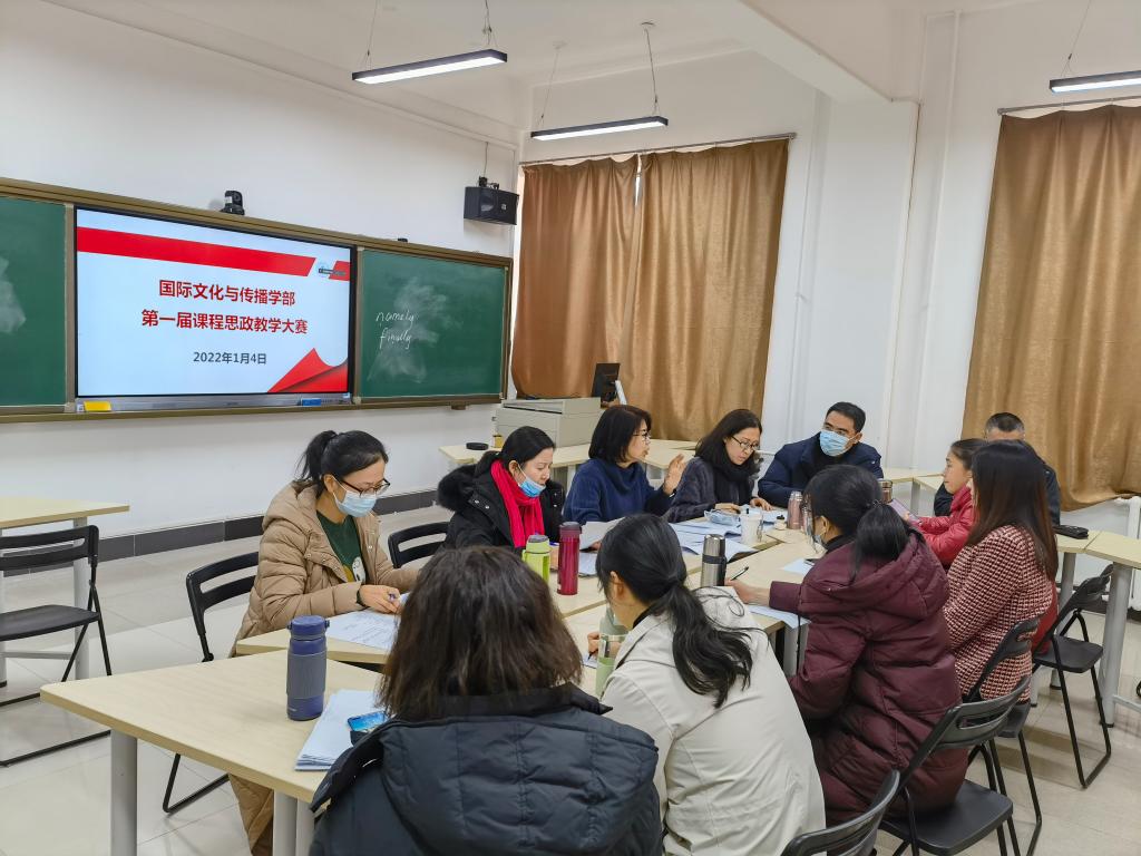 為充分發(fā)揮課堂教學的育人主渠道作用,探索和示范“課程思政”教學的有效途徑和方法,國際文化與傳播學部于1月4日組織了第一屆課程思政教學大賽。校質(zhì)保處處長趙佳因、北京市高等學校教學名師王培英、國際文化與傳播學部課程建設(shè)委員會主任劉嬌月、2021年北京市高校課程思政示范課程教學名師劉培擔任本次大賽評委,學部教師通過線上線下相結(jié)合的方式進行了現(xiàn)場觀摩。