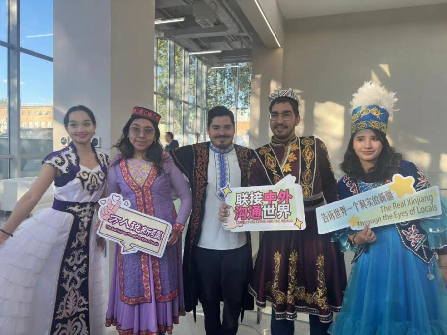 環球網于2023年4月與我校國際文化與傳播學部共建“國際傳播實習基地”,作為我校優質合作企業,多次為學生提供國際傳播實踐與交流平臺。本次“萬人說新疆”活動中,我校英語專業語聯國際商貿工作室派出8名同學承擔了現場口譯和場務工作,將新疆的特色美食、服飾和豐富多彩的非遺文化展品向眾多中外嘉賓進行了中英文雙語介紹。