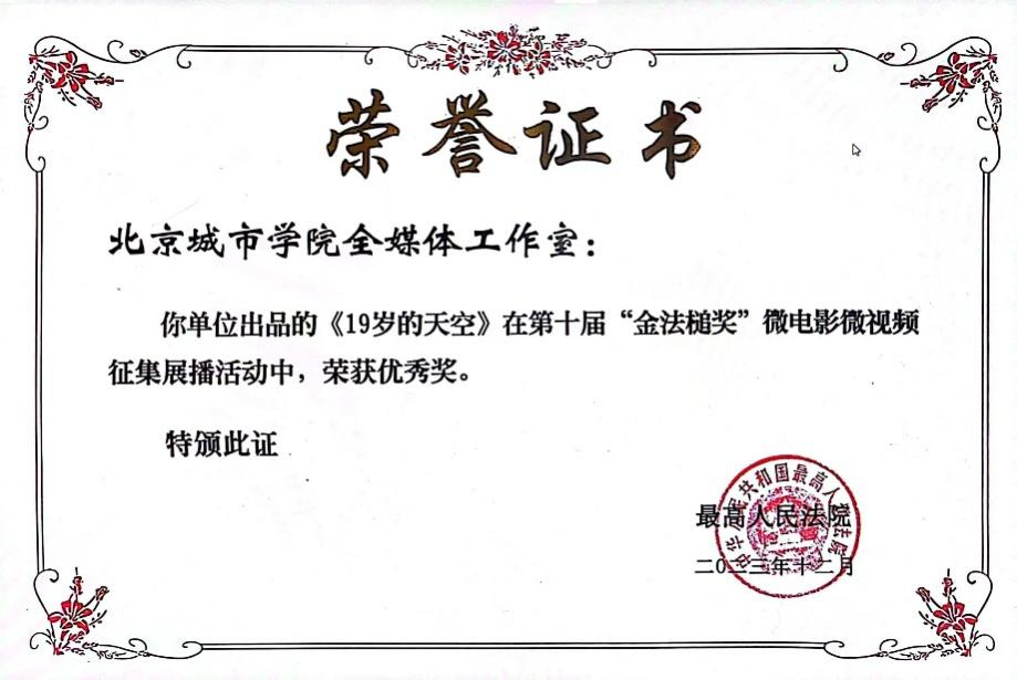 近日,文傳學部全媒體工作室選送的微視頻作品《19歲的天空》榮獲第十屆“金法槌獎”微電影微視頻征集展播活動優秀獎。