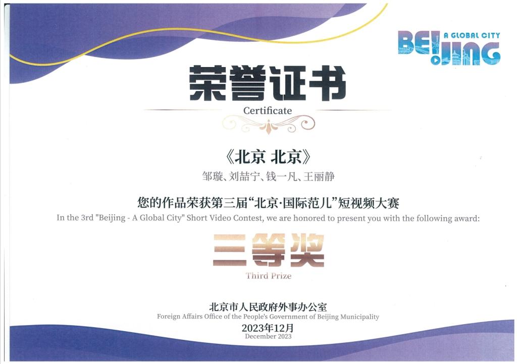 近日,國際文化與傳播學部戲劇與影視專業(廣播電視領域)研究生和廣播電視編導專業本科生創作的作品,在第三屆“北京·國際范兒”短視頻大賽中獲多項獎項。