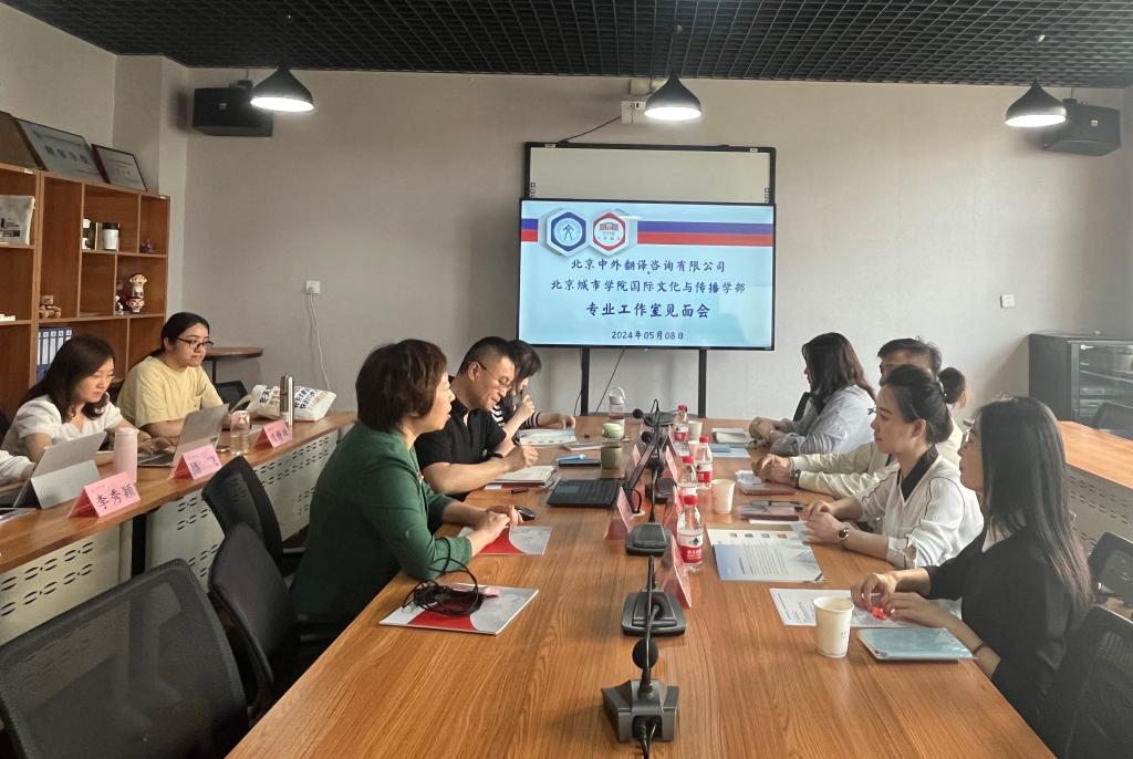 5月8日,我校國際文化與傳播學部校外實習基地北京中外翻譯咨詢有限公司生產中心負責人王海平、出版中心負責人韓笑等一行四人來訪。文傳學部黨支部書記周生輝、副主任呂英莉、副主任張心遠,以及翻譯、英語、法語、西班牙語、德語專業相關工作室教師共同接待了來訪。