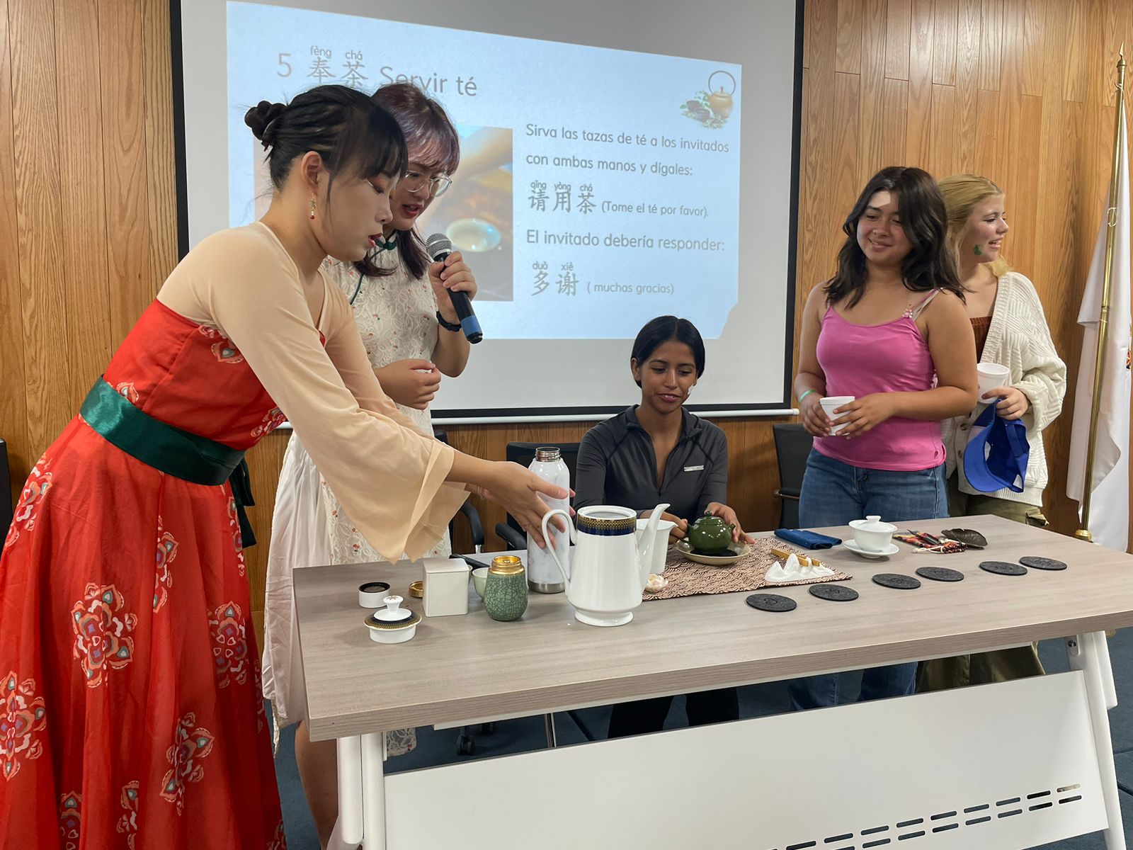 俞燁慧和張昊老師分別在6月3日和6月4日給學生們開展了精彩的文化講座。俞老師的講座以茶道為主題,向 San José del Valle的學生們介紹了中國傳統的茶文化,并親自示范茶藝邀請現場觀眾品嘗香茗。張老師則給同學們帶來了太極拳的主題講座,向Regional El Salto的學生們展示了中國文化中陰陽兩面的哲學思想,并帶領大家體驗了楊氏太極拳的魅力。兩位老師的講座讓學生們對中國傳統文化有了更深入的了解和認識,場下掌聲不絕于耳。