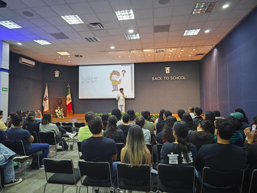 當地時間9月12日,瓜達拉哈拉大學孔子學院應瓜大學生活動處邀請參加了瓜達拉哈拉大學經濟管理學院(CUCEA)的開學儀式。中方院長魏淑華和張昊、李雪鳴兩位教師一起參加了活動。經管學院國際交流處及瓜大學生活動處的領導連同六十位新生代表出席了此次開學儀式。