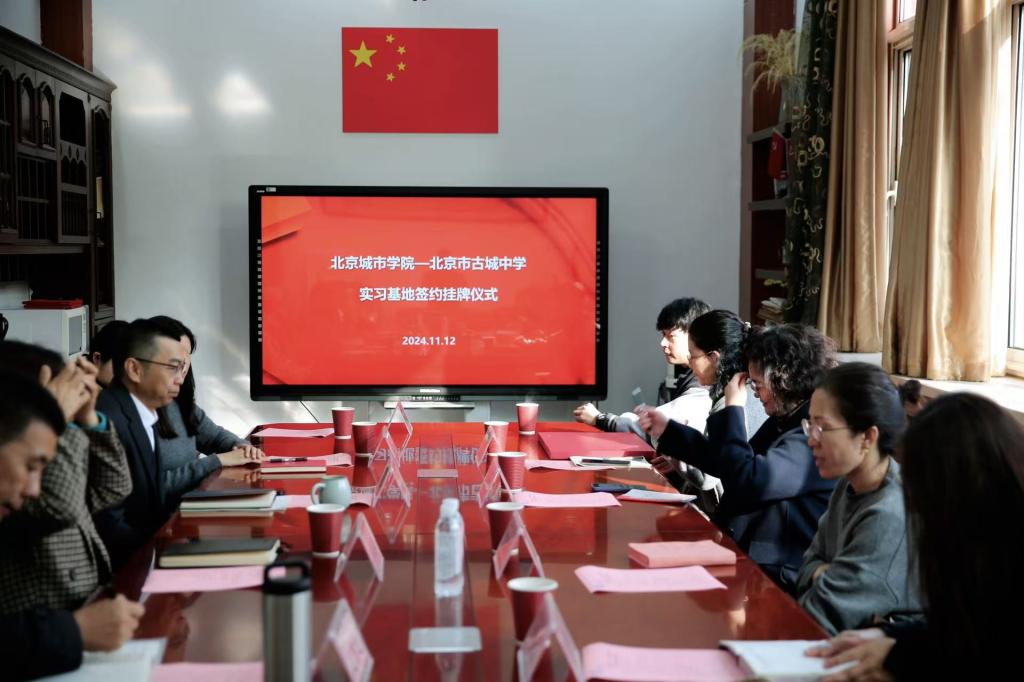 11月12日上午,國際文化與傳播學部和北京市古城中學在古城中學舉行實習基地簽約揭牌儀式。北京市古城中學校長林樂光、書記唐翠萍、副校長王曹送、黨政辦主任李嘉、黨政辦副主任和國際部主任趙偉,國際文化與傳播學部副主任王文蕭、劉嬌月等參加了簽約揭牌儀式。