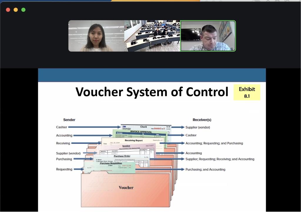 本學期兩校老師通過線上線下多種形式緊密合作,在課程設計、教學內容、教學方法、課堂組織等方面共同建設了會計學(雙語)課程。課堂上,James教授結合國際會計準則的最新發展,運用海外教學理念,為同學們提供了前沿的教學資料與案例分析,白蕓千老師則加入了符合本土化需求的教學內容。文傳學部國際課程班中外聯合授課的方式得到了同學們的一致好評。