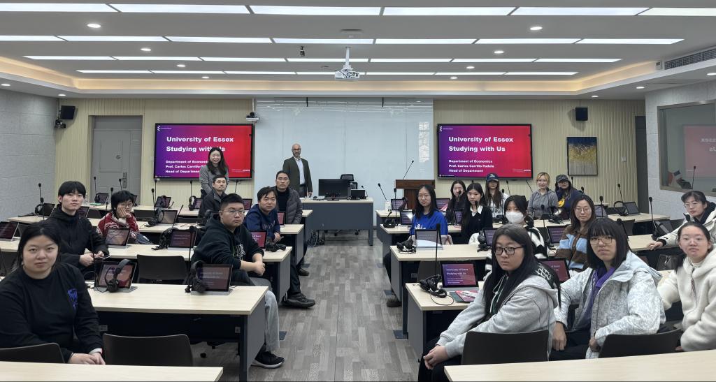 在講座前,文傳學部財管教研室與Carlos Carrillo-Tudela教授一行開展了金融學(國際課程班)、會計學(國際課程班)聯合培養專題研討會。國際文化與傳播學部副主任張心遠、財管教研室主任郭永建及相關教師共同接待。雙方就專業學生赴英國埃塞克斯大學開展“中英城市工作坊”訪學活動、雙方教師聯合開展課程教學及教研、埃塞克斯大學知名教授為兩校聯合培養的北城優秀學生提供申研推薦信等多項活動達成共識并將不斷深化。本次交流活動進一步提升了我校金融學(國際課程班)、會計學(國際課程班)專業國際化建設及優秀生國際化培養水平。