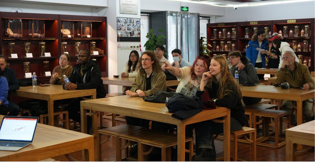 3月4日,中加師生以“北京中軸線非遺文化研學”開啟了一場沉浸式文化體驗之旅。活動首站是位于前門大街的廣譽遠中醫藥歷史文化博物館。兩國同學們一起聽取了來自我校合作單位北京大閱文化傳播有限公司劉穎老師主講的《北京中軸線非遺之旅》主題講座;在實地參觀廣譽遠博物館過程中,同學們深切感受到了中醫藥千年傳承與現代創新的完美交融。
