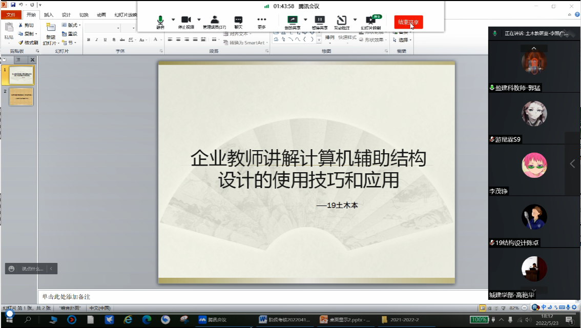 5月23日,城市建設學部邀請北京盈建科軟件股份有限公司的工程師郭雪川、郭猛為19土木工程同學做了一場關于計算機輔助結構設計軟件的使用技巧和應用情況的講座。
