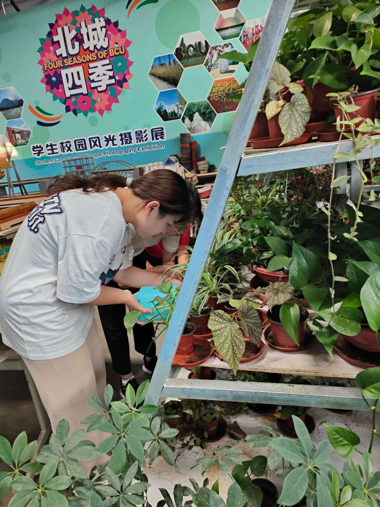 此次活動以綠化、美化、凈化5號實訓樓大廳內的景觀生態植物墻和校園環境為目標,內容包括植物培育與養護、拔除雜草、樹木刷白、撿拾枯葉等,共有2022級風景園林、城鄉規劃、城市管理、地理信息科學、工程造價、環境藝術等多個專業的學生參加。